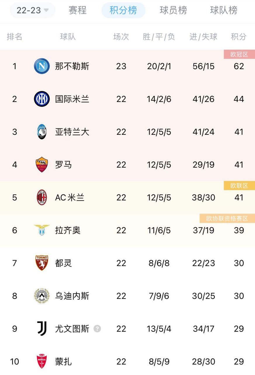3.意甲联赛第23轮