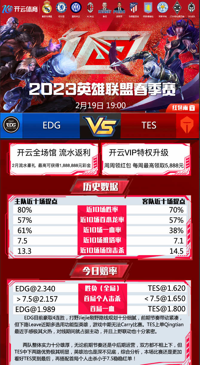 星空体育2月18日足球电竞热单推荐