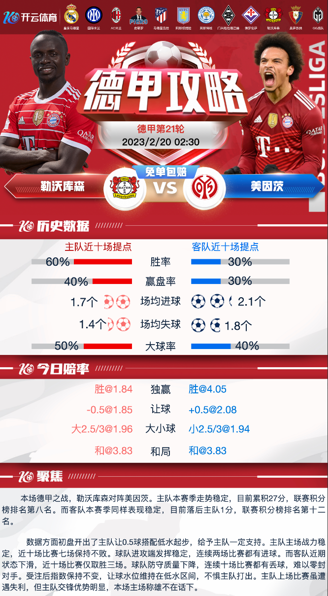 2.德甲-勒沃库森vs美因茨