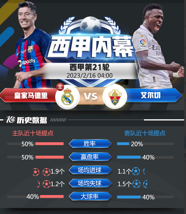 主队位列联赛积分榜第二位,整体实力更加雄厚,再加上球队刚刚获得世俱杯冠军,球队士气较为高涨。客队上轮西甲主场3比1大胜黄潜,成功止颓反弹。星空体育对于主队抱有较高期待,初盘便给出主队让2/2.5球,由于主队近期比赛较为密集,外界对于主队体能储备问题较为担心,数据方面并未给予有效支持,即时盘机构变更让球数,目前为主队让2球,并搭配超高水。两队往绩交手10场,皇马保持不败战绩,往绩心里优势巨大,再加上客队近期发挥并不稳定,本场比赛还是更加看好皇马主场再下一城!